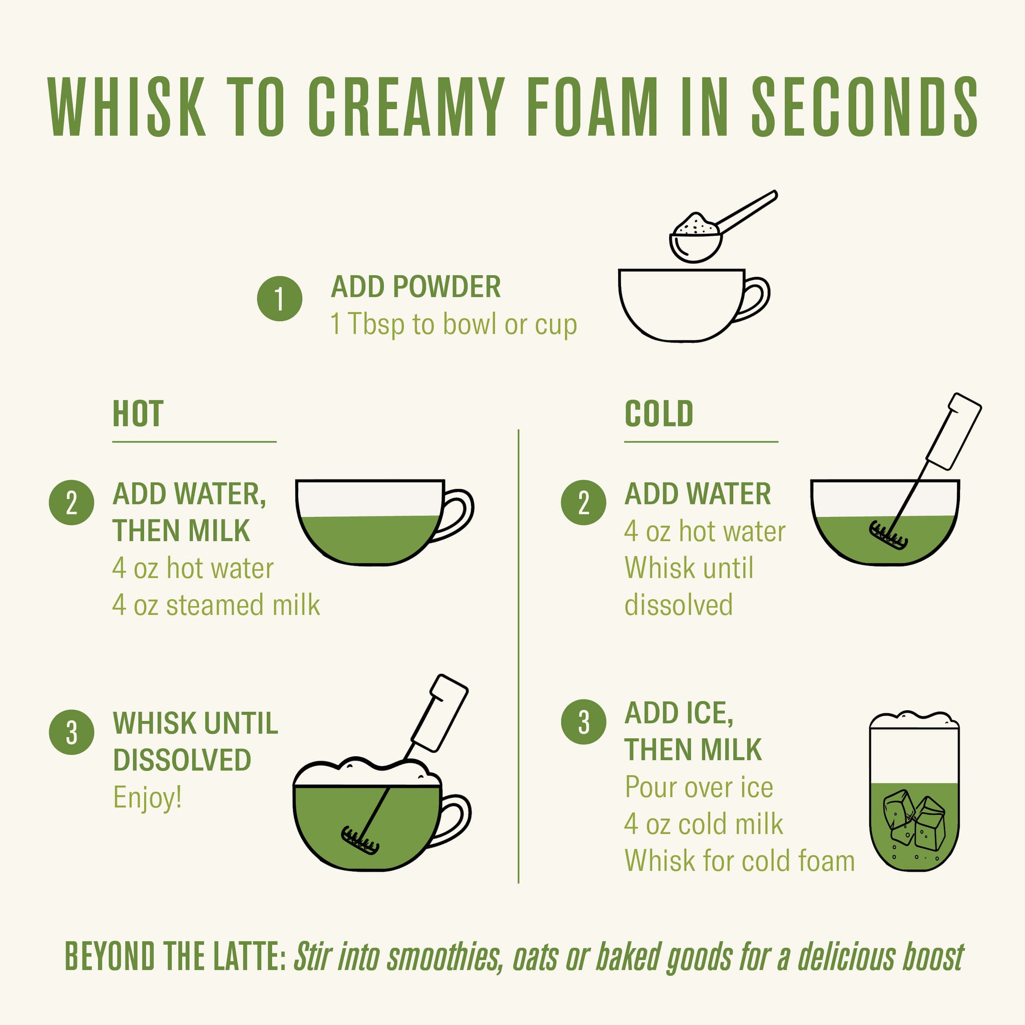 Matcha is a stone -ground green tea and nutrient powerhouse, rich in antioxidants and metabolism-friendly. Its caffeine content and the L-theanine in green tea are known to provide focus and energy.
